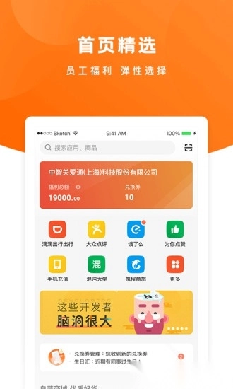 关爱积分、关爱额度、员工午餐、员工通讯等福利,覆盖吃喝玩乐、衣食住行等各类消费场景。