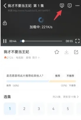 在播放页面,点击屏幕上的TV图标,或者找到TV投屏小图标。