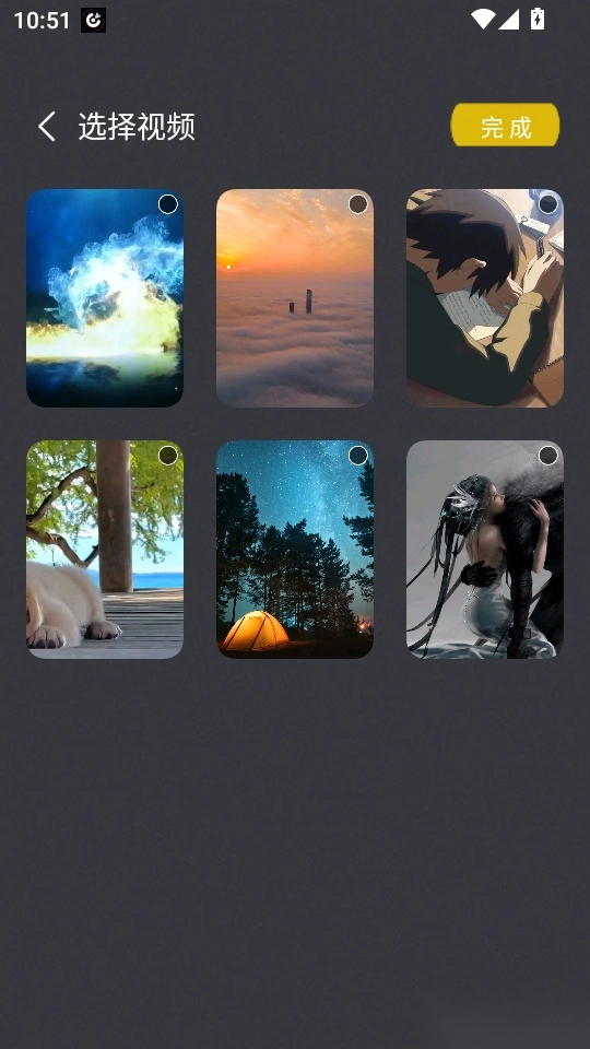 5.之后进入“选择视频”界面,勾选视频文件后点击右上角“完成”按钮进入下一步