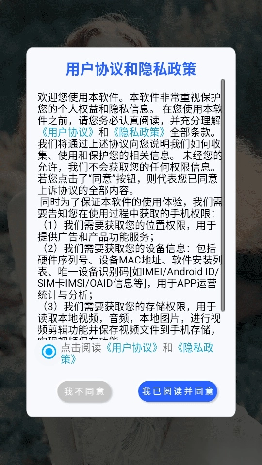 1.首先打开软件阅读协议和隐私政策后,点击“我已阅读并同意”按钮进入