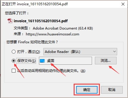用户选定电子发票的保存文件名与路径后,点击确定按钮就能完成操作。