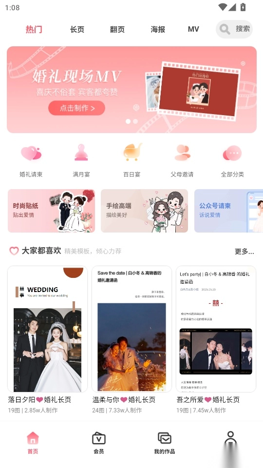用户制作的各类电子请柬会被存储到“我的作品”功能里进行统一管理,这样用户就能随时便捷地查找自己制作的请柬了。