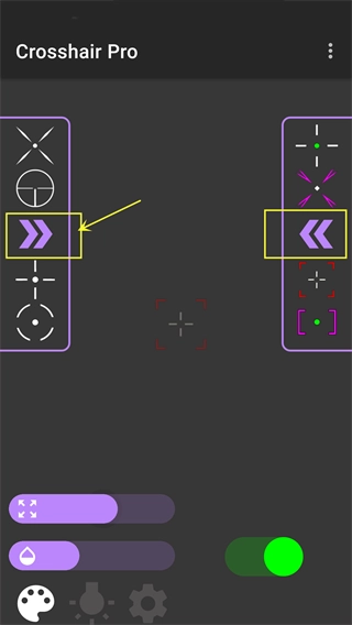 当然,软件内可供选择的准星类型远不止当前展示的这些,您可以点击下图中所示的箭头按钮,以查看更多不同样式的准星类型。