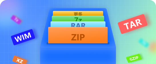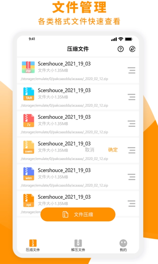 支持解压Zip,7z,RAR,ZIPX,TAR,win,swm,zipx,jar,xpi,obt,ods,epub,等多种文件。