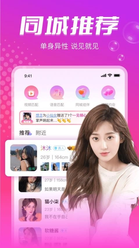 快速发现身边的有缘人,一分钟拉进彼此距离;邂逅同城附近单身异性。来一场别具一格的同城约会。