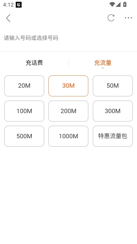5.最后选择“充流量”按钮后,就可以选择对应的流量大小进行充值了