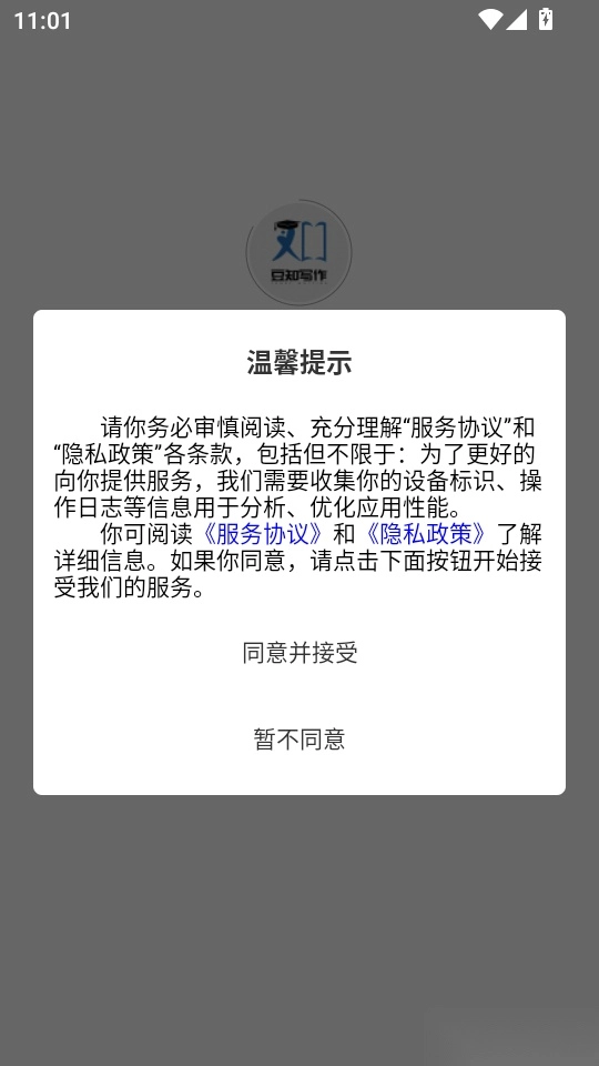 1.首先打开软件阅读“温馨提示”后,点击“同意并接受”按钮进入