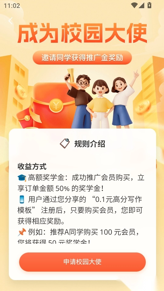 5.之后查看”规则介绍“后,点击“申请校园大使”功能按钮点击进入