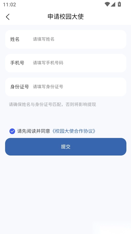 6.最后输入姓名、手机号、身份证号后,点击“提交”按钮就完成了