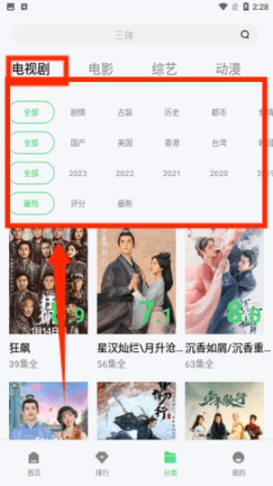 进入分类页面选择电视剧后,能依据类型、年份等多个维度来筛选剧集。