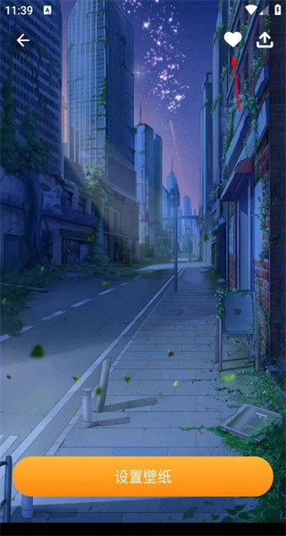 调出壁纸列表,选择城市废墟风格的壁纸并进入详情页,找到右上角的收藏按钮后点击,即可完成该壁纸的收藏操作。