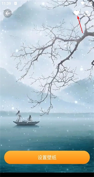 在雪景壁纸的详情页面,找到右上角的收藏按钮,点击这个按钮,就能把这张壁纸添加到收藏里。