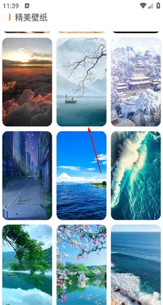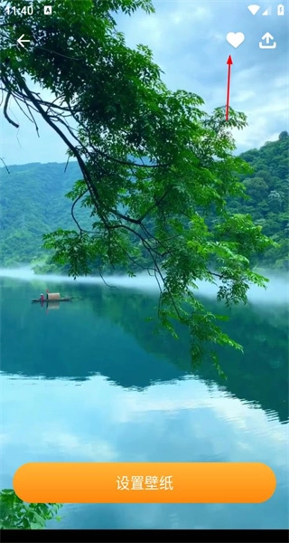调出壁纸列表,选择山水风格的壁纸并进入详情页,找到右上角的收藏按钮后点击,即可完成该壁纸的收藏操作。