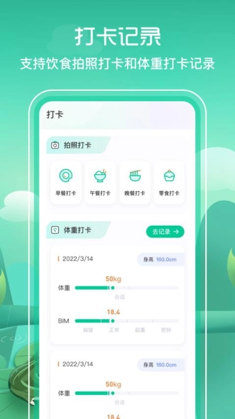 BMI减脂主要帮助用户健康减脂减肥,用户可以塑造自己完美的身材曲线,在线搭配健康的减肥食谱来进行减肥,就可以更好的减脂瘦身,轻松记录自己的体重和饮食,随时进行卡路里的计算,便捷的掌握自己每日摄入的卡路里,更好的进行健康生活。
