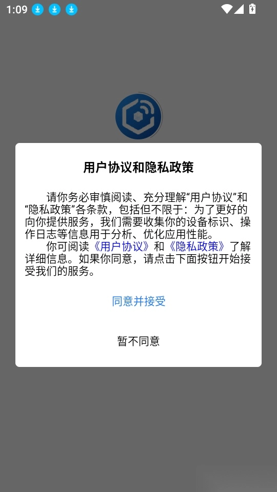 1、首先打开应用点击“同意并接受”按钮来进入中。