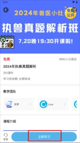 下滑能够查看课程的大纲介绍,点击报名后就会出现立即学习的选项。