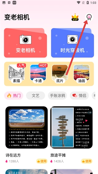 进入主界面后,点击右上角的【头像】图标,即可进入个人功能页面。