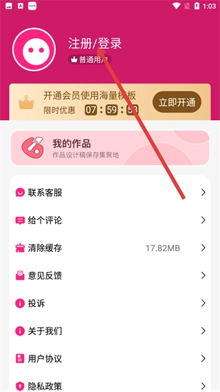 在个人功能页面,点击【注册/登录】选项,即可进入登录注册页面。