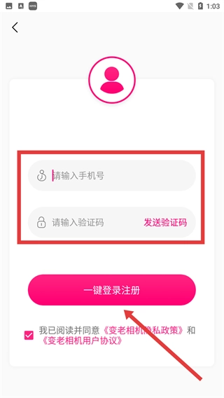 在登录注册页面,输入手机号与验证码,勾选同意相关协议后,点击一键登录注册按钮,即可完成登录注册操作。