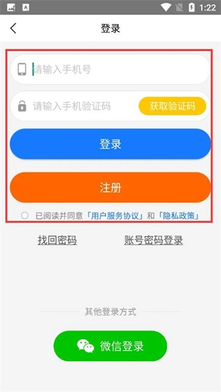 选择手机号登录方式后,依次输入手机号、获取并填写验证码,勾选相关协议后点击【登录】按钮,就能完成账号登录流程。