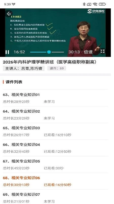 1、用户能够在软件里搜索到各类所需的课程资源,并开展在线学习;