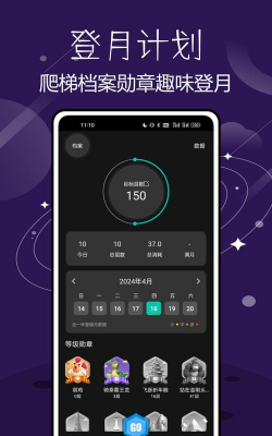 参与全国榜、城市榜和小队榜的角逐,收获属于自己的荣誉。不断积累登月的层数,就能收藏更多的「勋章」。