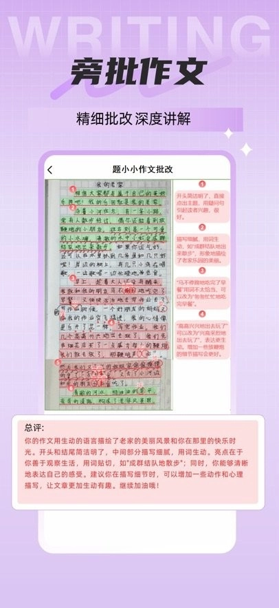拍照上传作文,系统就能智能批改,哪怕学生字迹潦草也能精准识别!批改结果十分详尽,不仅会点明作文的长处与不足,还能给出有针对性的改进建议。此外,它还具备全文润色、生成范文、梳理写作思路以及运用修辞手法等实用功能!不少孩子在写作时常常感到无从下手,让他们先独立完成一篇作文,再通过这样的反馈让他们清楚自己的优势与短板,如此一来,写作水平便能得到快速提升。