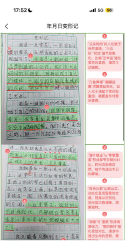 “显微镜式”批改:AI就像给作文做了一次全面体检,错别字、语病、标点错误一个不落全标红,哪怕是用拼音代替的生字也能准确辨认出来。比如学生写“我跑的很快”,AI会用心调整成“我像离弦之箭般飞奔”,让文字表达一下子变得鲜活灵动!