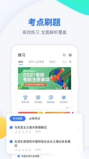 是大学生考研及在职考研必备学习平台,提供800所院校历年试题,考点刷题是可以进行高效练习的,海量好课中进行在线直播是能够与名师进行零距离互动的,随时随地高效的学习和进步。