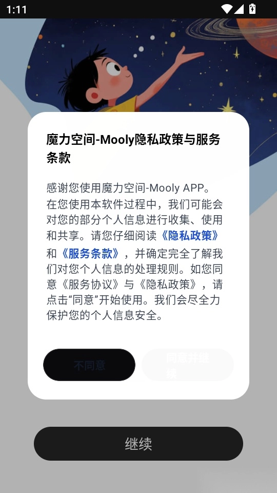 1. 首先打开软件,仔细阅读说明内容后,点击“同意并继续”按钮进入下一步操作。