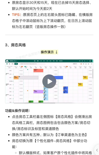 可视化表室状态界面的操作方式如下:通过水平轴与垂直轴的组合来确定间夜数,而房间的不同状态则借助颜色属性加以区分。
