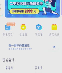 这是一款为语言学习打造的考试类软件,支持直接在线完成考试报名;在智能学习模块中,系统会依据用户情况推送个性化的学习资源;所有题型的学习内容均可免费使用,助力用户高效提升普通话水平。