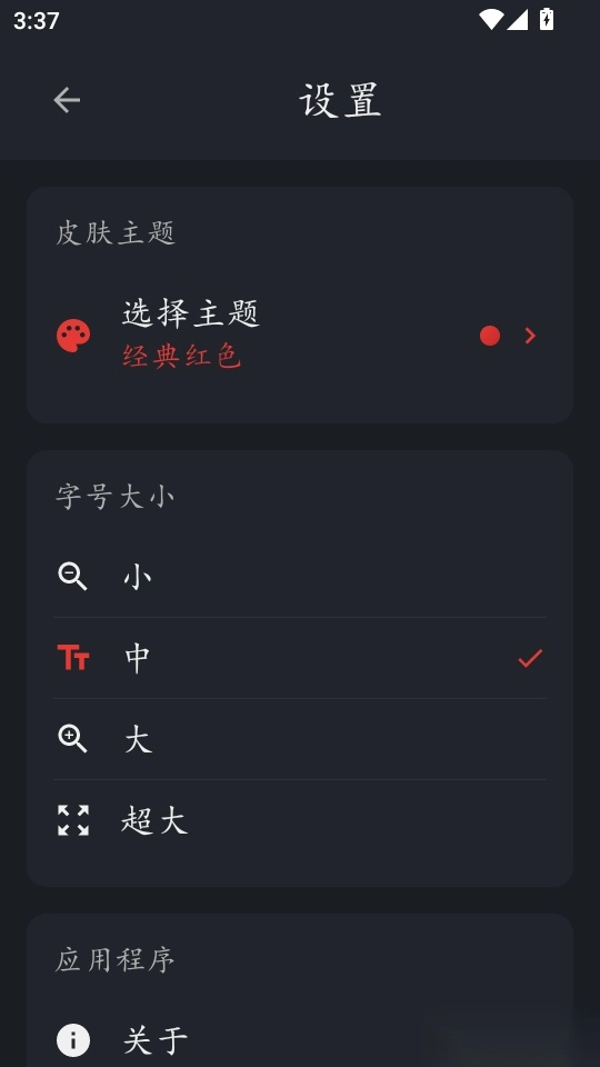 3. 随后进入“设置”功能菜单界面,找到“皮肤主题”模块下的“选择主题”按钮并点击进入
