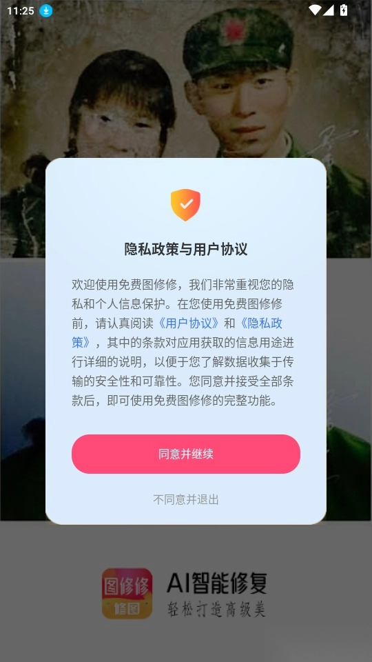 1. 打开软件后,阅读《隐私政策与用户协议》,点击“同意并继续”按钮进入下一步。