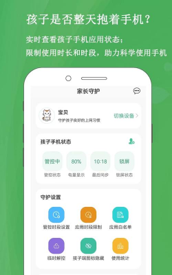 极守护家长家长可以使用该软件来远程管理孩子手机,通过数据同步的方式避免孩子过多的将时间耗费在玩手机上,每日使用情况也能清晰查看,极大便利了日常生活,有需要的用户可以来。