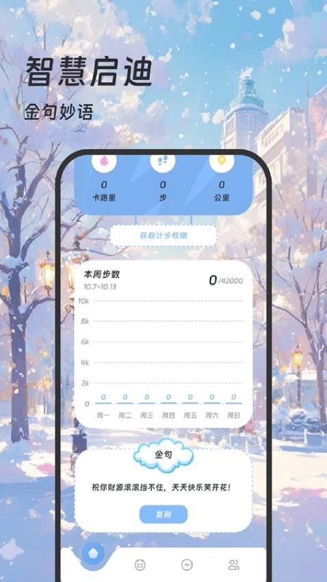翩跹计步是一款提供运动计步、便利贴、金句妙语、运动计时等多种功能的软件,可以帮助用户将每天行走的步数实时跟踪记录,精准记录用户行走的每一步,并通过图表统计方式将用户一周的运动趋势直观展示,让用户可以清楚的知道自己的运动变化趋势,还推荐有很多的金句妙语可以随时查看学习,为你提供智慧启迪,同时还支持用户复制金句保存使用,还提供有非常贴心实用的便利贴记录工具,可以将重要信息以便利贴形式进行记录管理,可通过便利贴提示的方式让用户轻松记住每一个重要信息,还可以通过精准的运动计时促进用户的高效运动,有需要的用户就快来翩跹计步使用吧!