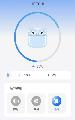 2、完成匹配就能在应用中进行控制,可自由调整声音大小和开启降噪模式;