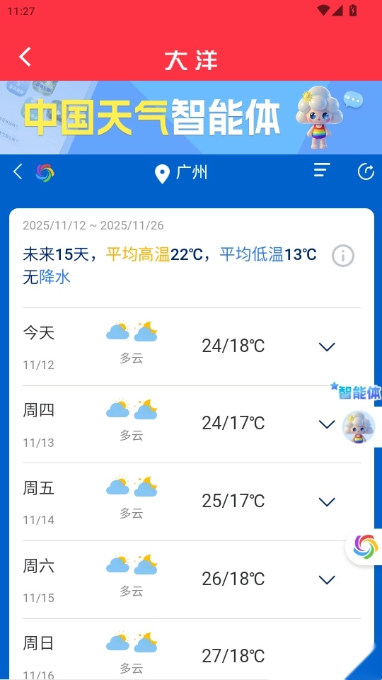可以随时在这里查询未来几天的天气预报信息,便于用户更好的安排出行生活的日程计划。