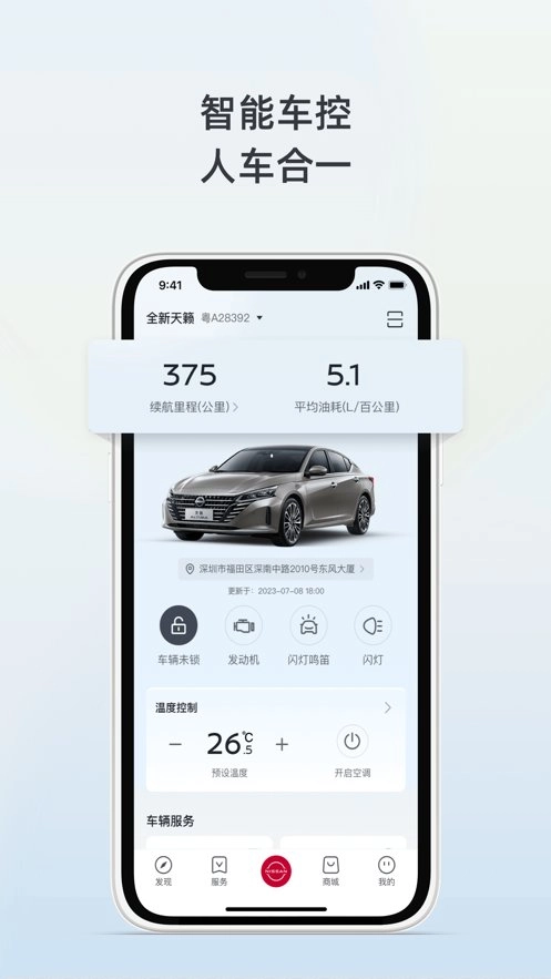 东风日产(原“日产智联”)是东风日产为用户打造的集在线看车、购车、用车、互动于一体的平台。您可以在这里获取东风日产的新鲜资讯与优惠,一键完成下定;也能在社区分享用车体验,与车友交流互动;还可以通过多种途径获取会员积分,在商城选购原厂精品和优选好物;更能随时远程控制车辆、查看车辆状态或预约维保等。