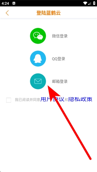 3、在登陆蓝鹤云页,点击邮箱登录,进入登录页面。