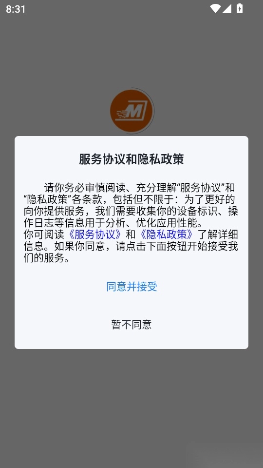 1.首先打开软件阅读协议和隐私政策后,点击“同意并接受”按钮进入