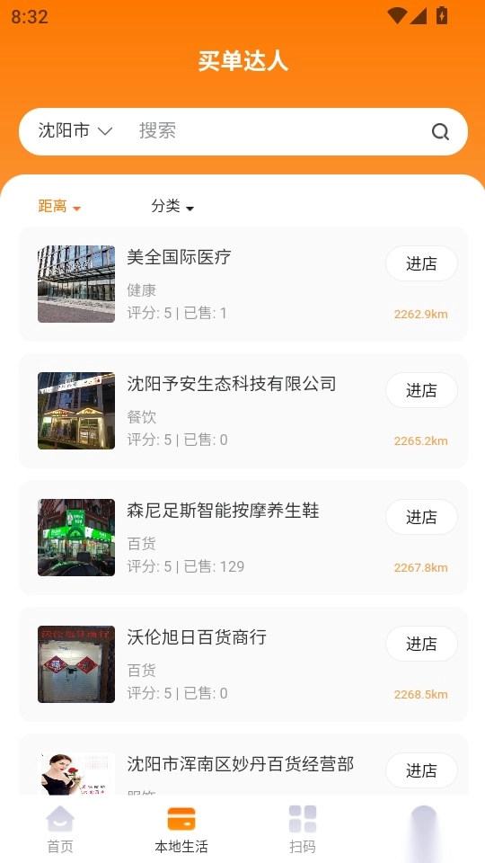 4.然后进入附近店铺大全界面,任意点击“进店”功能按钮进入下一步操作