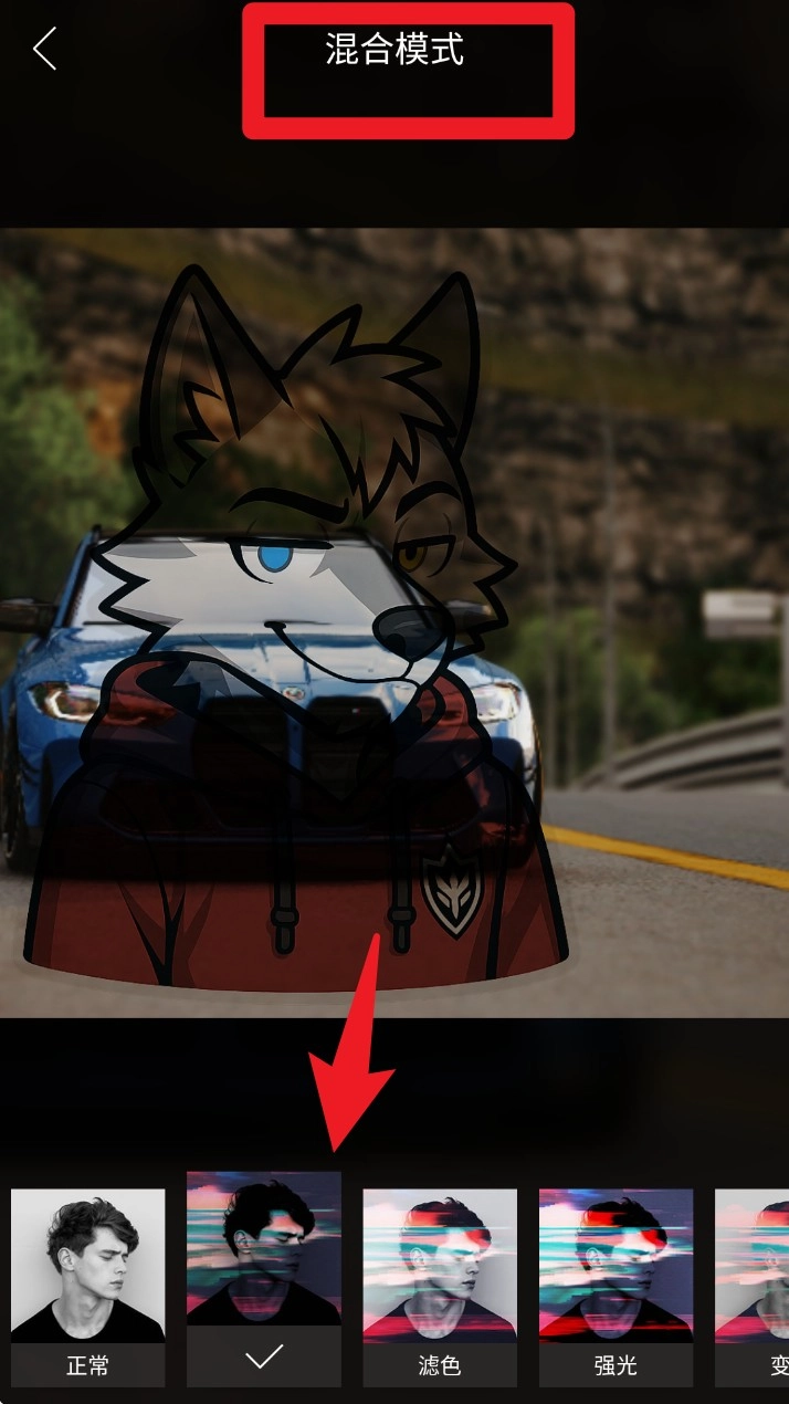 添加图片后,你可以进入“混合模式”的设置界面,通过滑动操作来选择滤色、强光、叠加等不同模式,从而快速制作出带有氛围感的视觉融合效果。