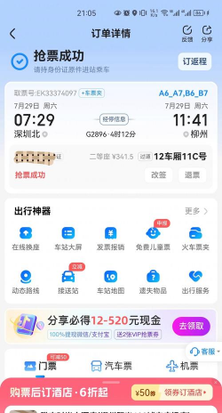 1. 买火车票享5折购酒店券福利,7天不用自动退