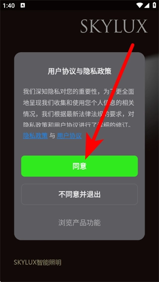 1、打开智能照明,在隐私政策弹窗中,点击同意。