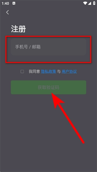 3、进入注册页面后,先输入手机号,接着勾选相关协议,之后点击“获取验证码”按钮。