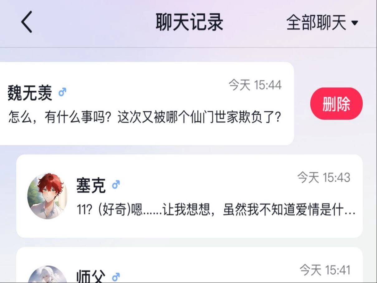 在此选择想要删除的对话框左滑点击删除