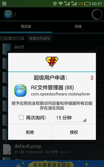 RE文件管理器的高级功能需要ROOT权限支持,ROOT权限的主要用途是修改手机存储的根目录,尤其是在将根目录的模式从只读切换为可修改状态时,会用到ROOT权限。