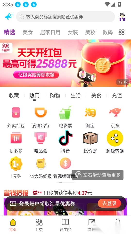 省大妈是一款专注于帮用户网购省钱的工具软件,能让大家轻松享受优惠购物的便利。平台汇集了海量大额优惠券资源,覆盖多个购物平台的各类商品优惠,方便用户自由筛选,快速领取优惠券后折扣下单,尽享实惠,实现省钱购物的目标。对于新用户,平台提供免单福利,可实时购买心仪商品,轻松实现零元购,便捷选购品牌好物并快速下单;同时,省大妈手机版支持用户分享商品赚取佣金,只需实时分享优质商品,就能获得相应收益,且提现速度快,让分享赚钱变得简单。有需要的用户不妨来本站体验使用!