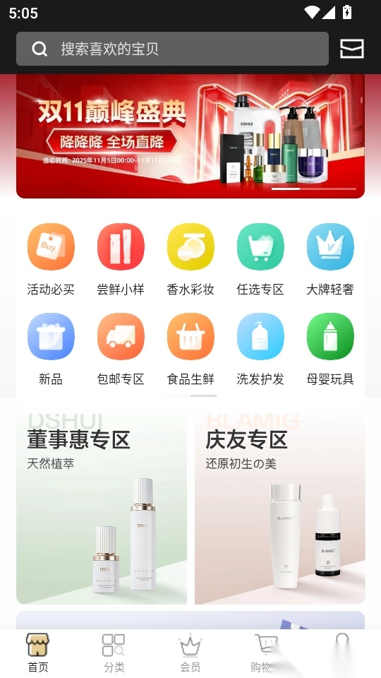 拥有丰富的各种活动专区,其中函告活动必买、新品、团购以及包邮专区多个专区;